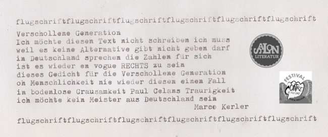 Was für ein schönes Projekt, das gerade als Gemeinschaftsarbeit von Literatursalon Donau, Druckwerkstatt Ulm, Marco Kerler kritzelt und nennt das Texte und Grafikerin Adela Knajzl entsteht.  Setzen der Texte für die Flugschrift für das Festival Contre Le Racisme Ulm – ganz klassisch in Blei.  Gedruckt wird die Flugschrift später auf dem betagten Original Heidelberger Zylinder der…