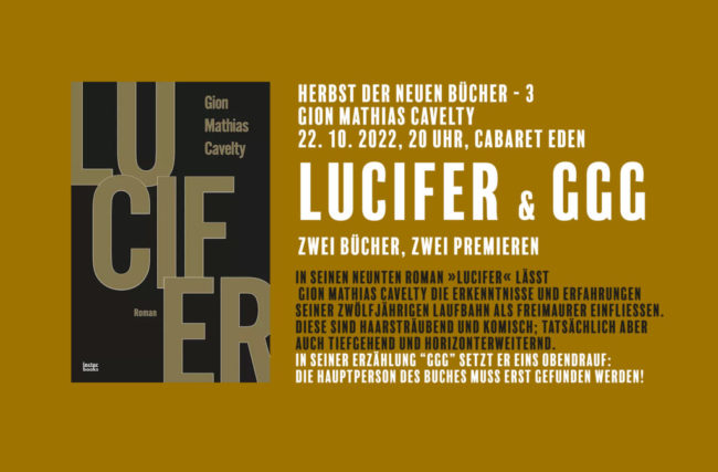 Ich freue mich immer, mit meinem Kollegen Gion Mathias Cavelty zusammen zu kommen. Diesmal besonders, den wir funktionieren unseren „Vorzüglichen Abend der phantastischen Literatur“ um zu einer echten Buchpremiere. Und zwar für „GGG“ aus Gions Feder. In seinen neunten Roman „LUCIFER“ lässt Gion Mathias Cavelty die Erkenntnisse und Erfahrungen seiner zwölfjährigen Laufbahn als Freimaurer einfliessen.…